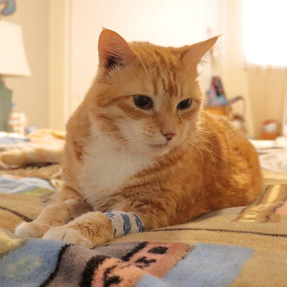 I found a photo of Chris wearing a bandage from this day in 2019. He must have just returned from the vet.