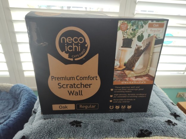 We got a box last week from my wife’s son and his fiancée. It contained cat treats and a couple of toys for our boys. The first wasn’t really a toy, but a cat scratcher.