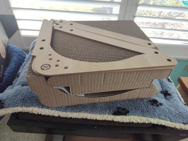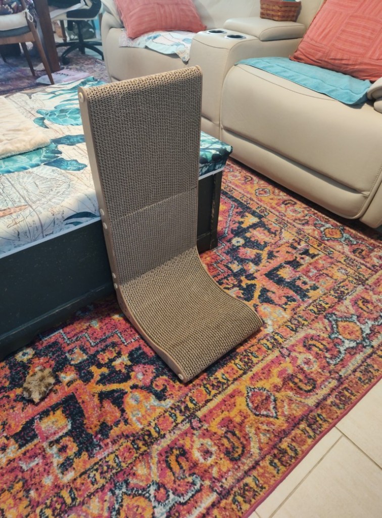 Both Frankie and Floki have been scratching on this new scratcher, although never when I was ready with a camera. I will say that so far they’ve only scratched on the flat part near the floor. Perhaps I should turn it over, so the long end is on the floor, or flip it, so the long end is at a 45-degree angle. It’s nice that I have options.