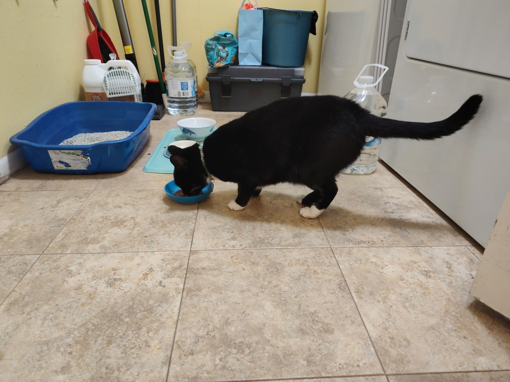 I returned at 9:30 to give her the second half of the can of cat food, but she wasn’t interested. She only wanted to go outside, so I let her out. Hopefully, she is starting to trust me, and I won’t have a hard time getting her inside tonight.