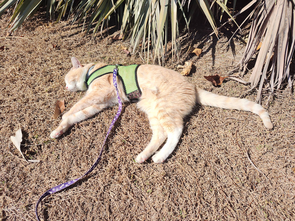 During our walk yesterday, my Frankie encountered our neighbor’s Frankie under the bushes. She hissed and backed away. What did my Frankie do? He rolled over on his back, of course.