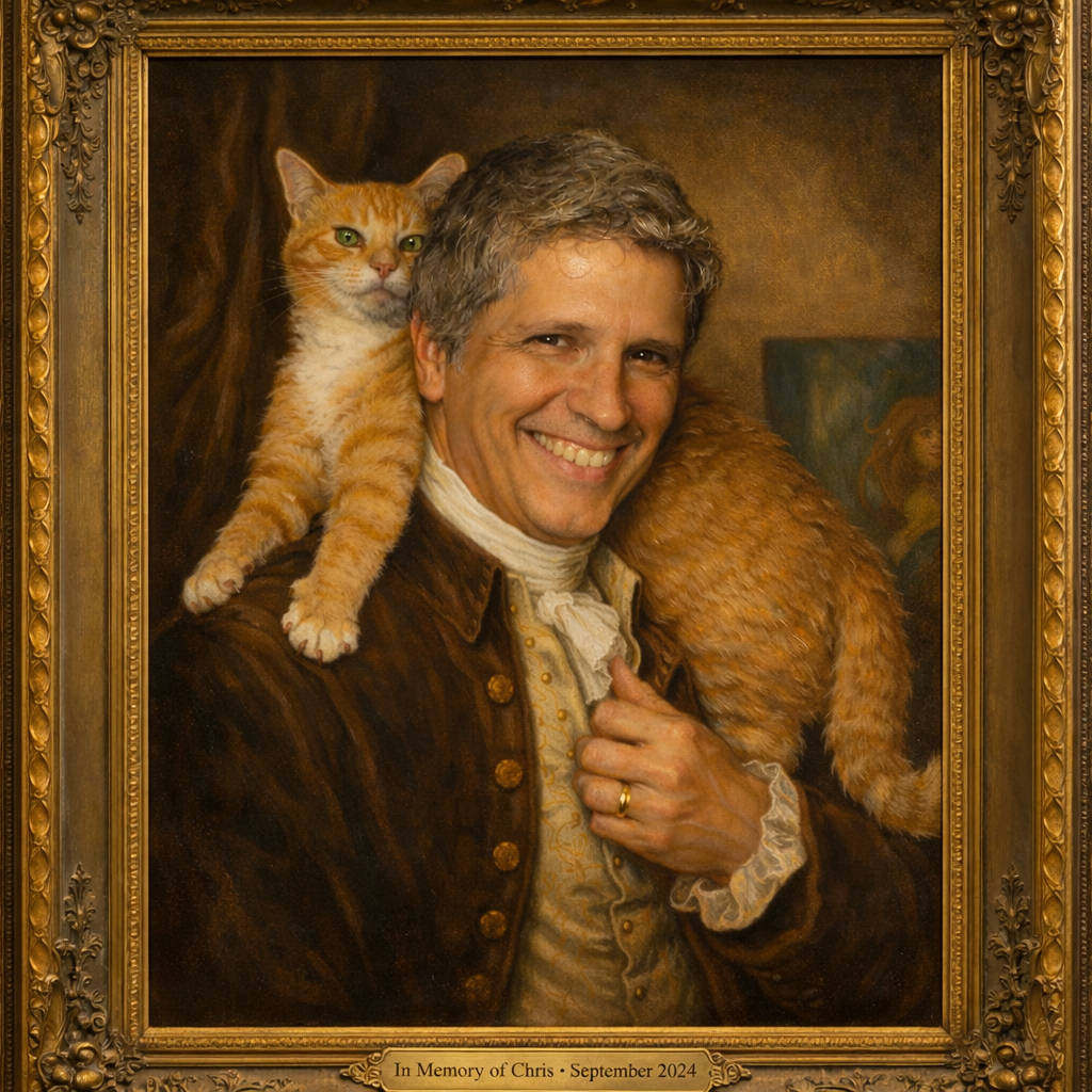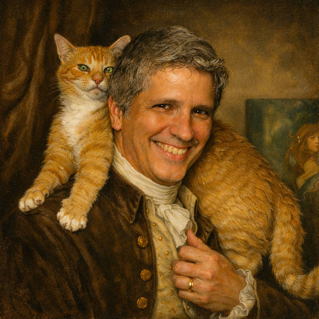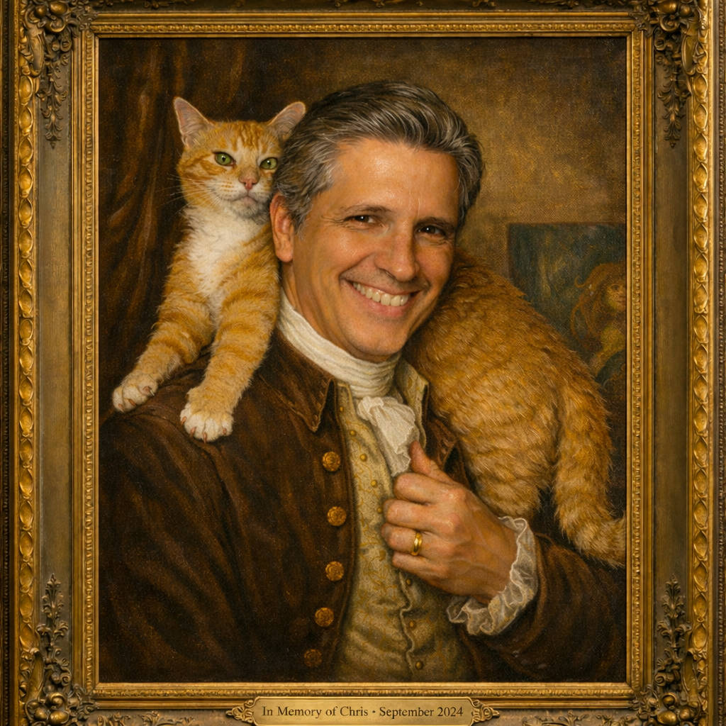 I then said, “Now, recreate the uploaded photo as a 18th century formal painting,” and got this.