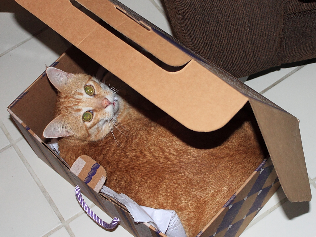 I think cats are genetically programmed to climb inside boxes. Everyone has seen it. Nevertheless, it is still cute so I thought I would share a couple of pictures of Chris recently. This box had some paper on the bottom which made it especially appealing.