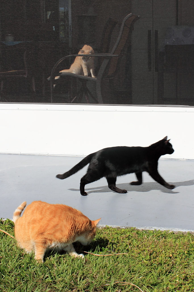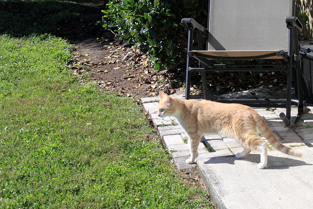 The other side borders a large condo building and, until Frankie started heading toward it, I never noticed the fence had gaps big enough for a cat to walk through. I yelled to Rose that I needed her help but she was not there. She went inside the house.