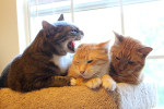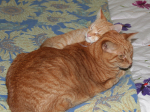 Chris hasn’t changed much since I wrote this although his added girth does mean he now lies more “next to” than “on top of” the other cats.