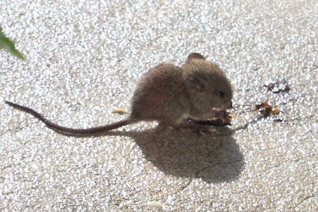 Chris and Puck were going crazy at the front window and I walked over to see what they were so interested in. There was a mouse on our sidewalk. It looked like he was eating a bug and he was totally oblivious to the turmoil he was causing just four feet away. I believe it was the first mouse I have ever seen in the wild, if you can call our sidewalk “The Wild.”