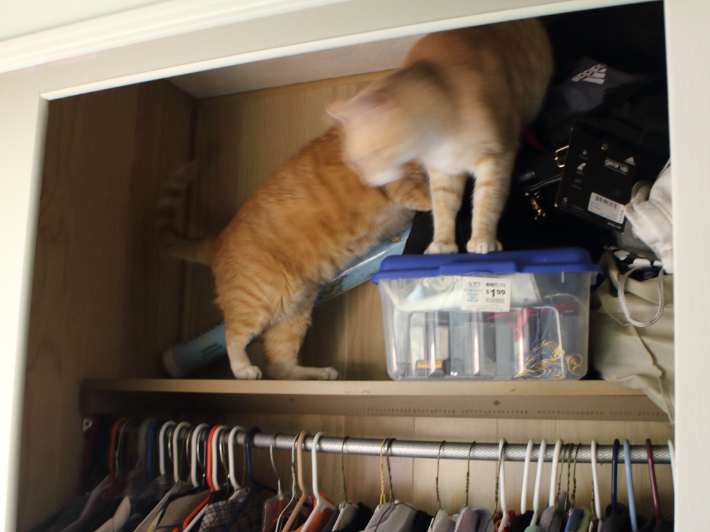 The commotion got the attention of Frankie, who soon joined him in the closet.