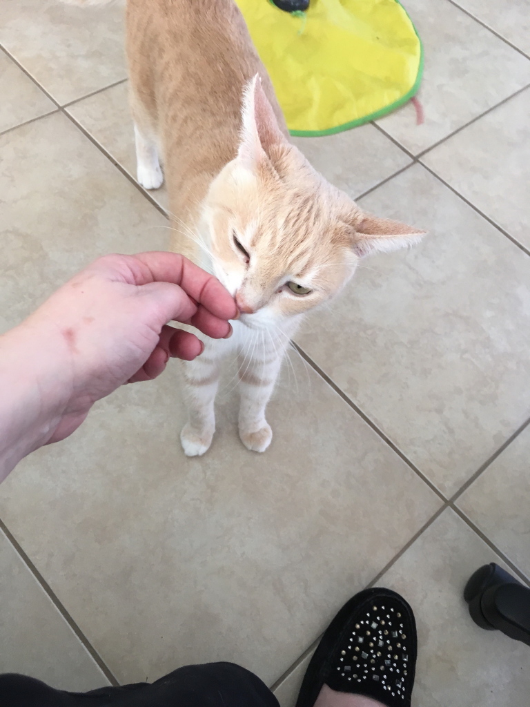 All of our cats love her now. Even puck, who is the shyest cat of them all, comes out for Lynn’s attention.