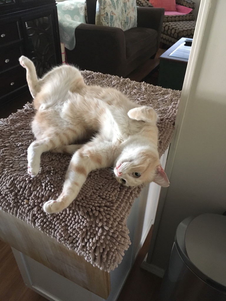 cat ChrisFrankie is so comfortable with Cat-Sitter Lynn that he just lets it all hang out.