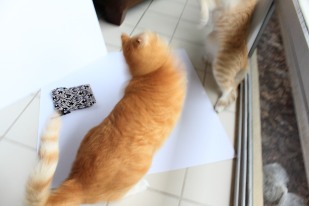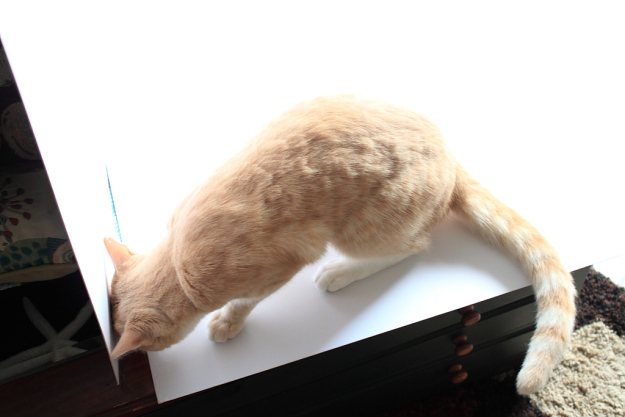 Rose and I have been trying to sell a few things on eBay these last couple of weeks and my job has been to take the photographs. I remembered I had a couple of white boards for matting photographs and thought I would use those for a background. I laid one flat and propped the second one at a 90 degree angle. Once I did that the cats were all over it like I just introduced them to a new kind of catnip.