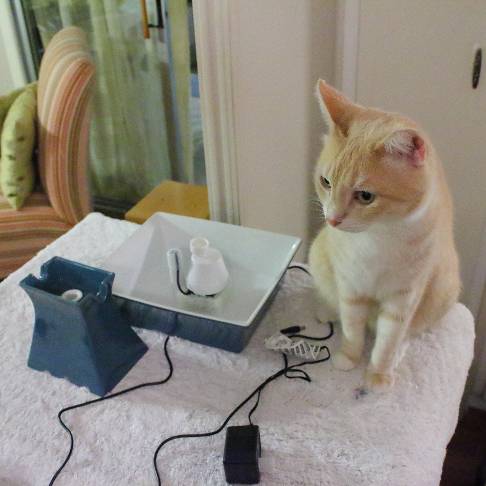 We have that same fountain in white. It’s really nice and easy to take care of. Wally is the only one that seems to drink from it though. Some cats just can’t get used to using a fountain, I don’t know why.