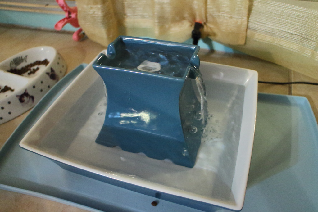 I like fountains… and I thought dogs will like them too… but I was wrong… Easy feared it like the plague and Phenny makes a huge mess instead to drink… I gave it to the new kitten of our neighbor… and she disliked it too… maybe it needs a while and she will like it once…