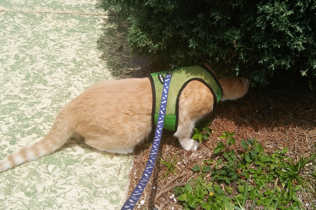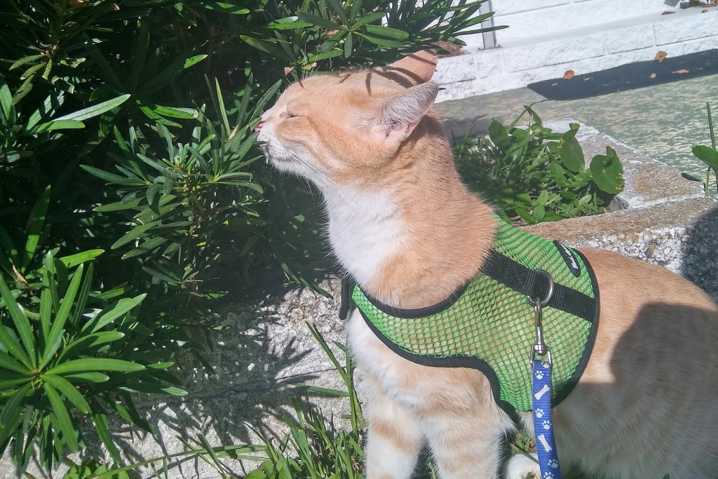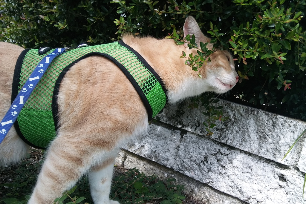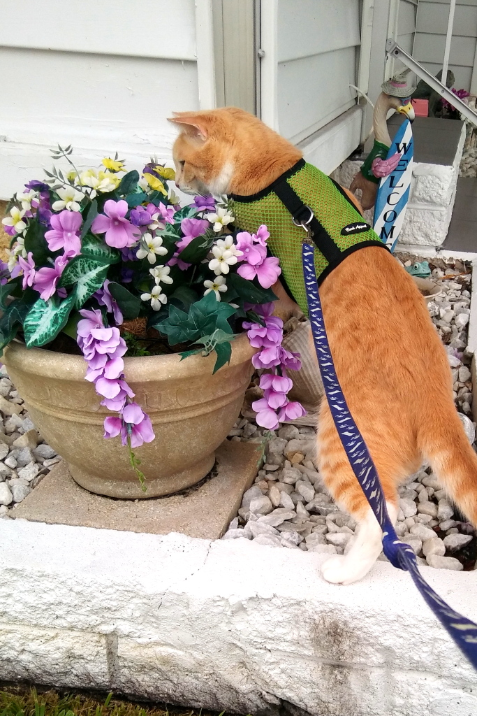 My cat Dougy is a sniffer, too! What’s the brand of that cat harness? I’ve had bad luck with others, but this looks like a good, secure one. I think both my kitties might enjoy spending time outdoors if I can control them this way, and I could use the walk myself.
