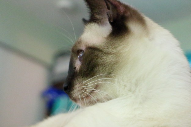 I agree with the others: beautiful from all sides and adorable! I have the same problem with my Persian kitty boys: they always look mean or angry, though they are very mild-mannered and sweet kitties! Floki is my favorite type of Siamese cat. The ones with the very narrow faces look almost like caricatures of what a Siamese kitty is.