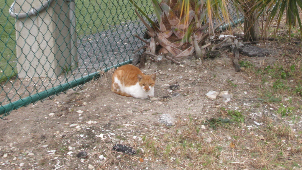 Until a few weeks ago, three cats would come around to eat but only the one tabby would be there waiting for me. A fourth cat joined the group a few weeks ago (See There’s a New Feral in Town)and about two weeks ago the white and gold (ginger)cat joined the regular breakfast crew.