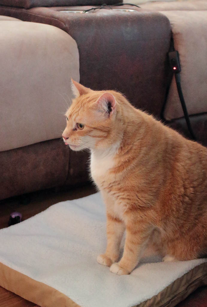 When I was ready to sit down, Chris was back on the mat again. This time it wasn’t plugged in but he didn’t care. He remained on that mat until we got up to go to bed.