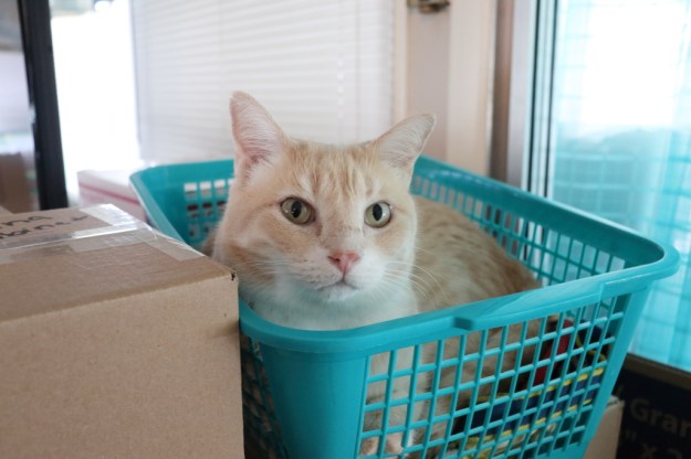 Frankie is the most excited by the growing pile of boxes. Rose set a basket down temporarily until Frankie found it.