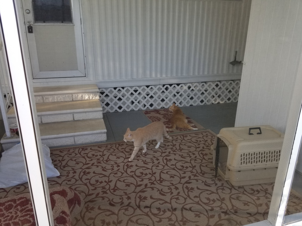 The movers were here at 8:00 a.m a week ago on Saturday. We moved most everything out of the catio and then put the cats out there while the movers emptied the house.