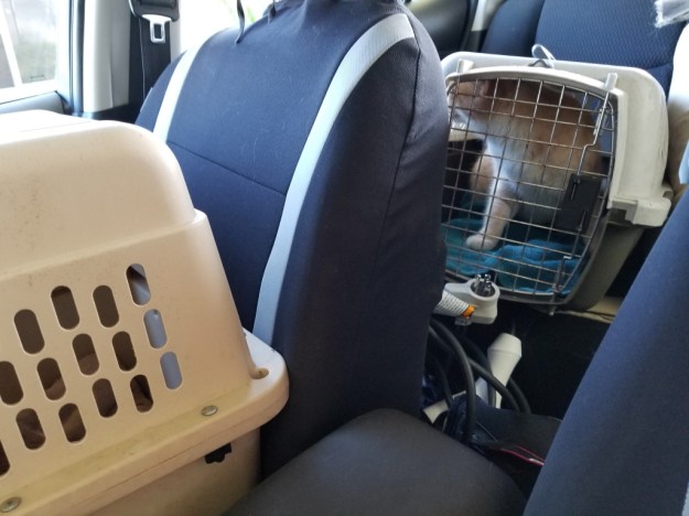 When they finished Rose took Floki in her car and I took Chris and Frankie in my car. I put Chris in front because his carrier was the biggest and put Frankie in the back seat.