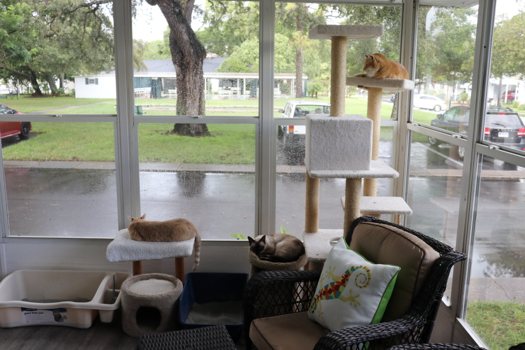 Glad everyone survived the move. That Florida room looks pretty pawsome…those windows are amazing. We bet the cats will really like that and forget all about a catio.