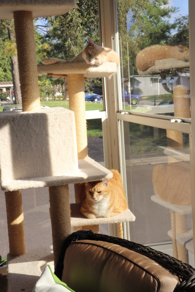 The new home has a Florida room with big windows that let in more sunlight than our last home, which had awnings that kept much of the sun out. As you probably know, cats love lying in the sunbeam.