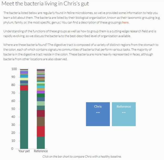This shows that Chris has an over abundance of one type of bacteria. If we click on the green section we get more information.