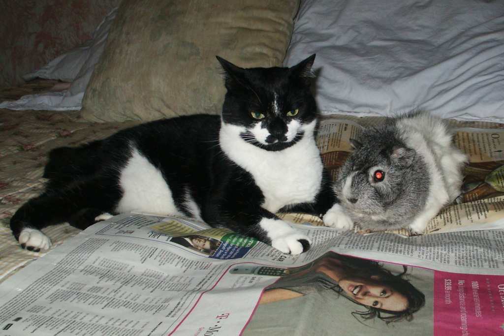 Since I didn’t do a post for Rainbow Bridge Remembrance day, I thought I would post a photo of Princess taken in 2003. Here she is posing with my son’s pet guinea pig, Furball.