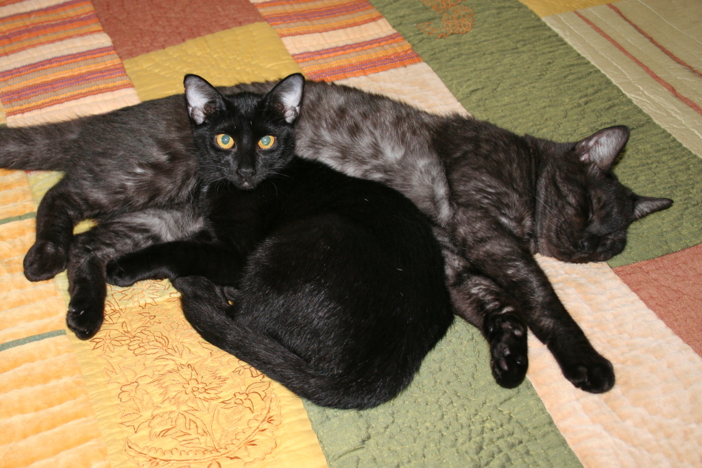 Here is a photo of Flash and Alex. It was taken October 16, 2005, a few months after we adopted Flash and Tigger as kittens.
