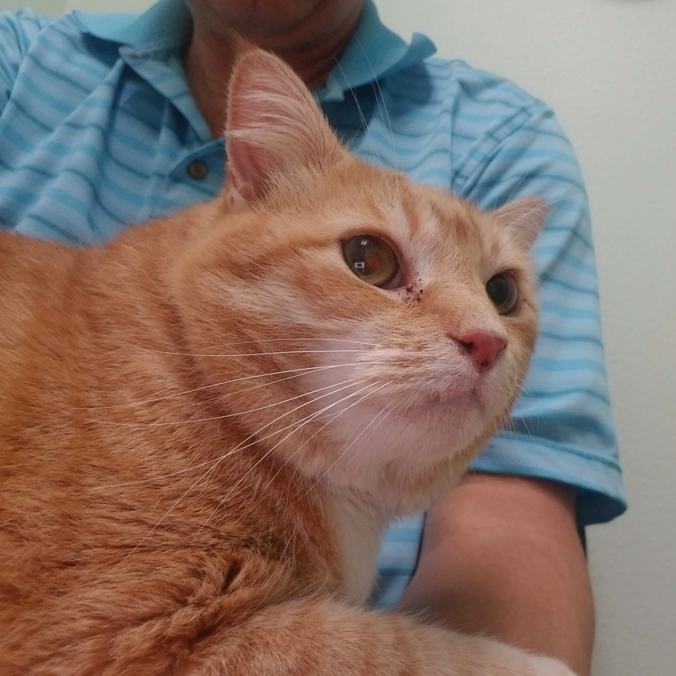 When the vet came it to check on Chris, he resisted and had a death grip on the edge of the table. The vet tech could not move his paws away so I had to step in to help. The tech then tried to hold him down after the vet was done checking his stomach, which I didn’t understand. I stepped in and said, “Hold on!” I then looked at the vet and said, “Can I take him?” With a nod from the vet I picked him up and put him on my lap.