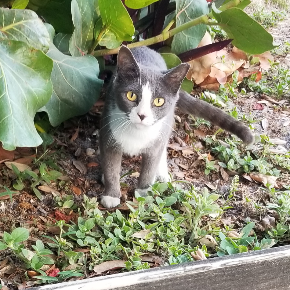 On the way out after my shift I noticed a beautiful cat that was just outside the door. He meowed at me and I couldn’t help but wonder if he was one of our cats that escaped. I took a photo of him and went back inside to ask someone.