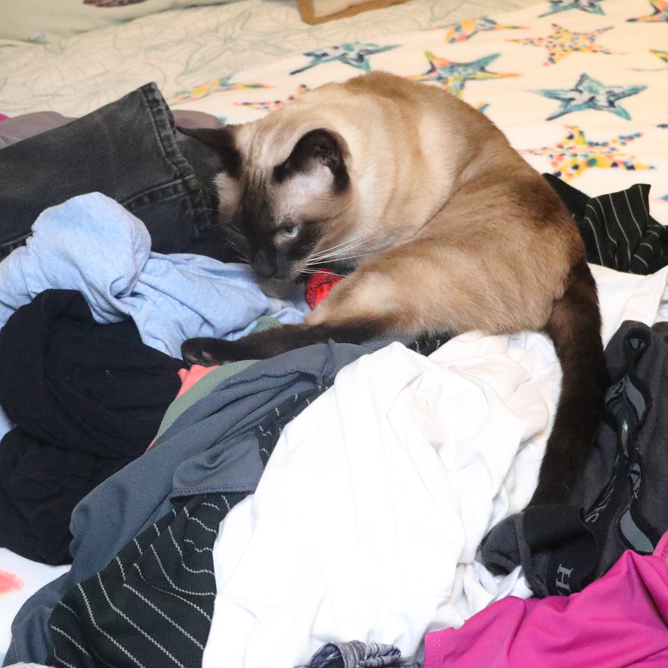 Floki is always around for bed making and laundry folding events.