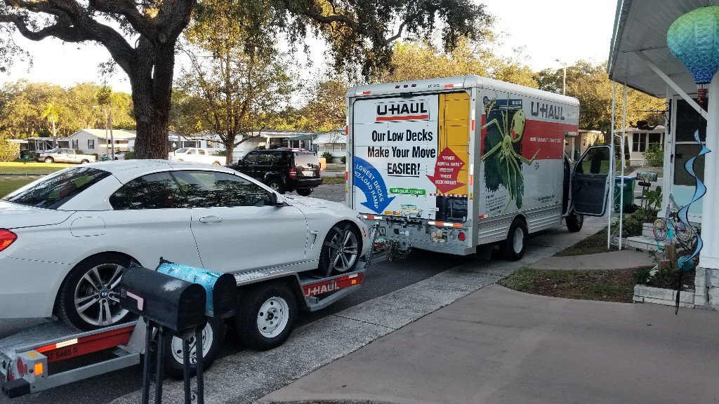 We rented a moving truck yesterday and I spent about four hours loading it. When I was mostly done we went back to the U-Haul place and got the car carrier. They quasi helped us but said we had to do it so they couldn’t be sued.