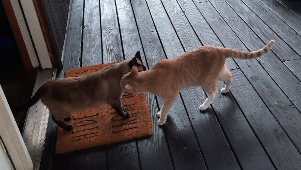 Our cats are finally starting to enjoy our catio after the interruption of our dog visitors. It took Floki until Wednesday but once out, he loved it.