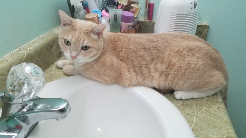 Our previous ginger tabby, MacKenzie, used to follow me everywhere. None of ours consistently follow me now. Calista Jo is the most apt to do so. Whoever said you could go to the bathroom alone? XOCK, angel Lily Olivia, angel Mauricio, Misty May, Giulietta, angel Fiona, Astrid, Lisbeth, Calista Jo, Cooper Murphy, Sawyer & Kizmet