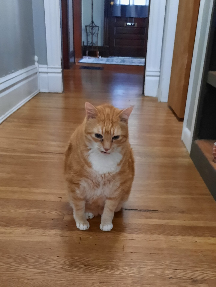 He stopped in front of the empty food bowls and tried to send me a psychic message but I pretended not to notice.