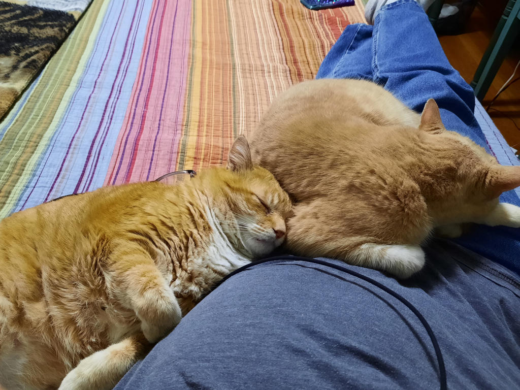 Chris and Frankie both like to nap on my lap. In fact, Chris is on my lap as I write this. Usually, having both on my lap doesn’t last long because Chris annoys Frankie, but on this day there was peace.
