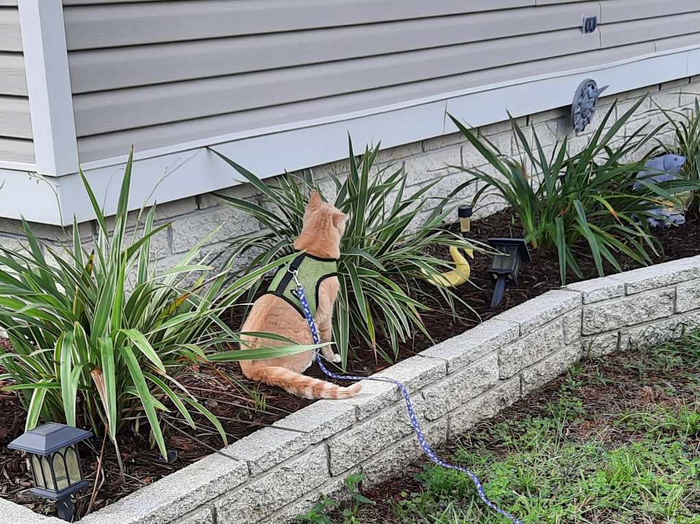 During the two months that we were in West Virginia, I did not take Frankie for a walk one time, although he did escape once. Frankie was generally content with hanging out on the catio and didn’t bother me to go outside so I didn’t bother offering. I thought when we got back to Florida he might forget about going for a walk, but not so.