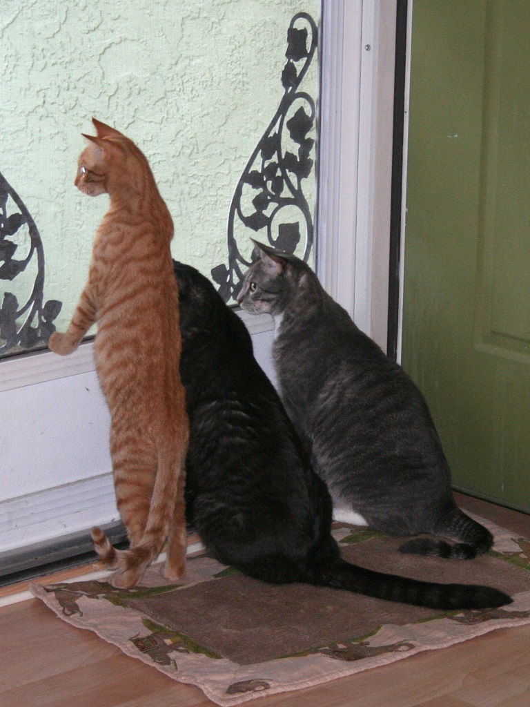 Here is a photo from November 11, 2005, of Tigger, Alex, and Abbey looking out the front door. I do not remember what was going on at this time but I like to imagine someone is coming to the door and they are there to greet them.