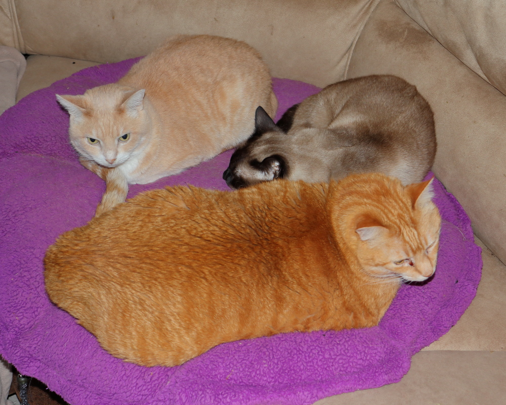 Yesterday, I was very surprised to see all three of our cats on the Jackson Galaxy bed.