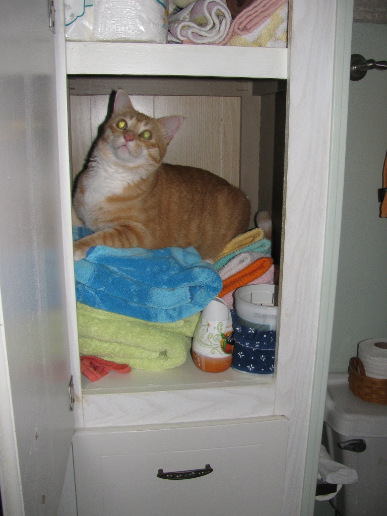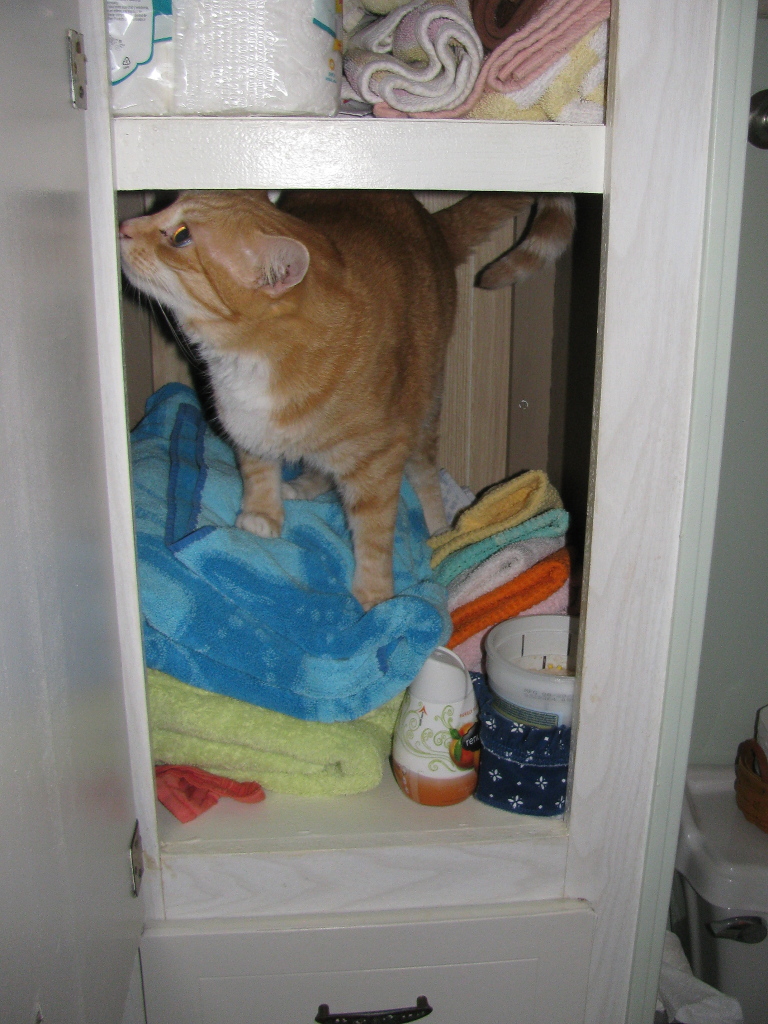 Puck: What’s going on Frankie? Frankie: Chris got the door open to the towel closet and is inside.