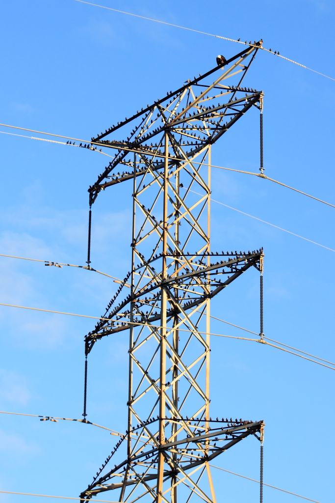 WOW – that’s a major score – those transmission lines look so strange with all the birds but leave it to the gorgeous eagle to be KING of the mountain!
