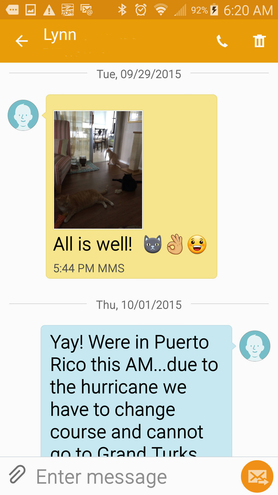 Here is a post from October of 2015 for Throwback Thursday. We were away on a cruise and our cat sitter sent us lots of updates.