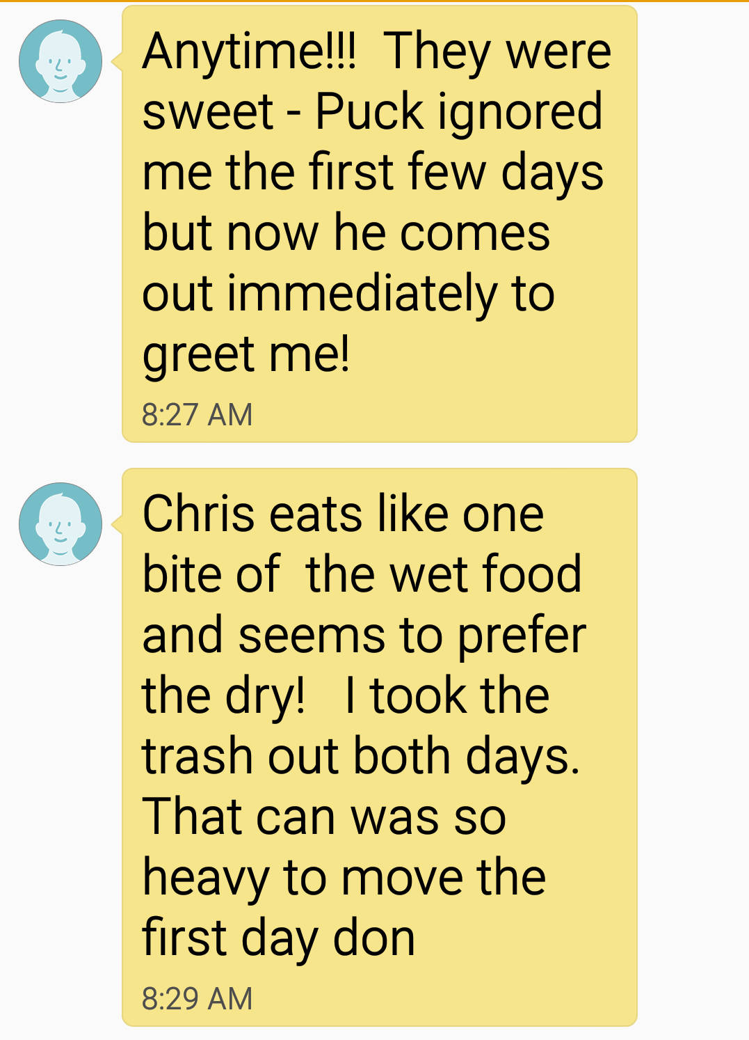 Sometimes you get a good one. Unfortunately, circumstances have changed and she no longer watches our cats when we go away.