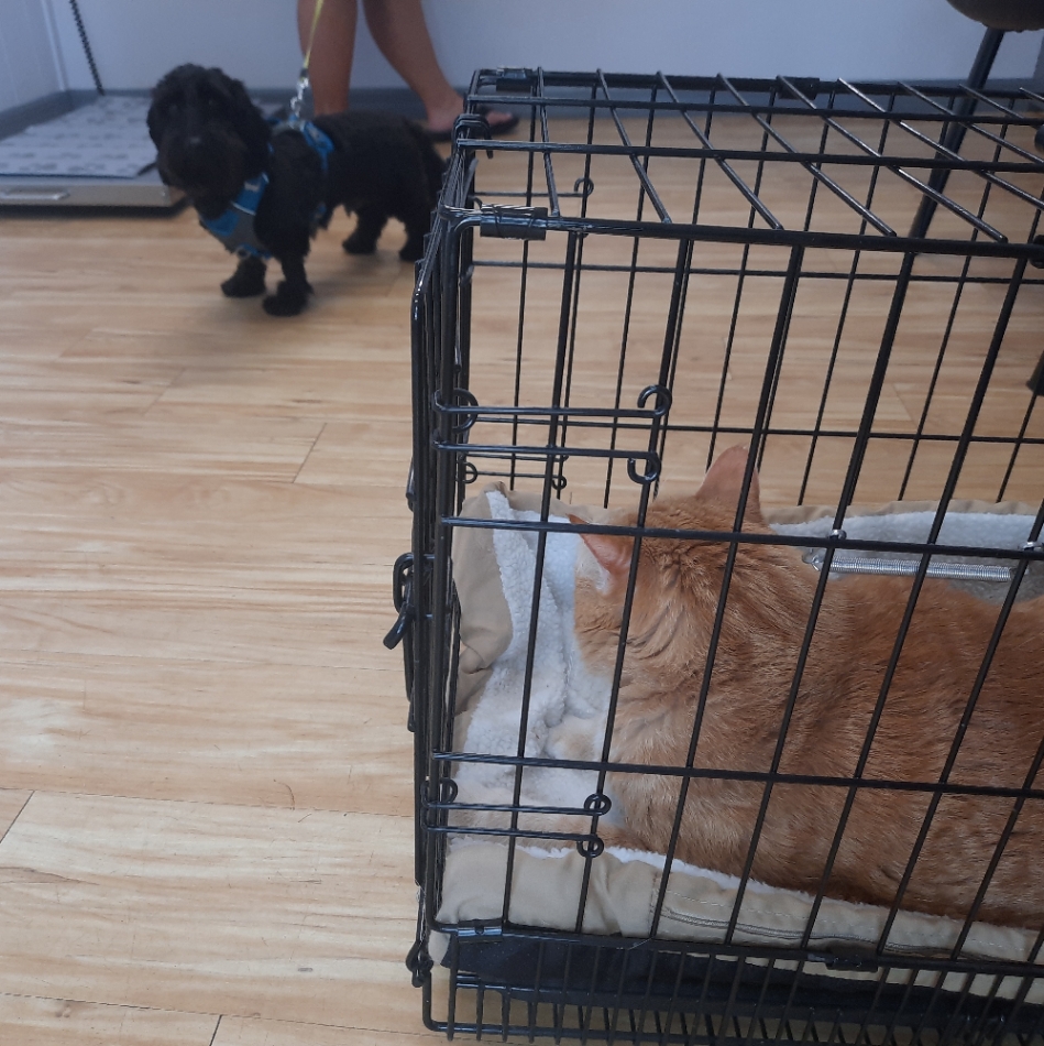 The exam was over about 20 minutes after we got there but we had to wait another 40 minutes before we could leave. During that time Chris actually fell asleep in his crate.
