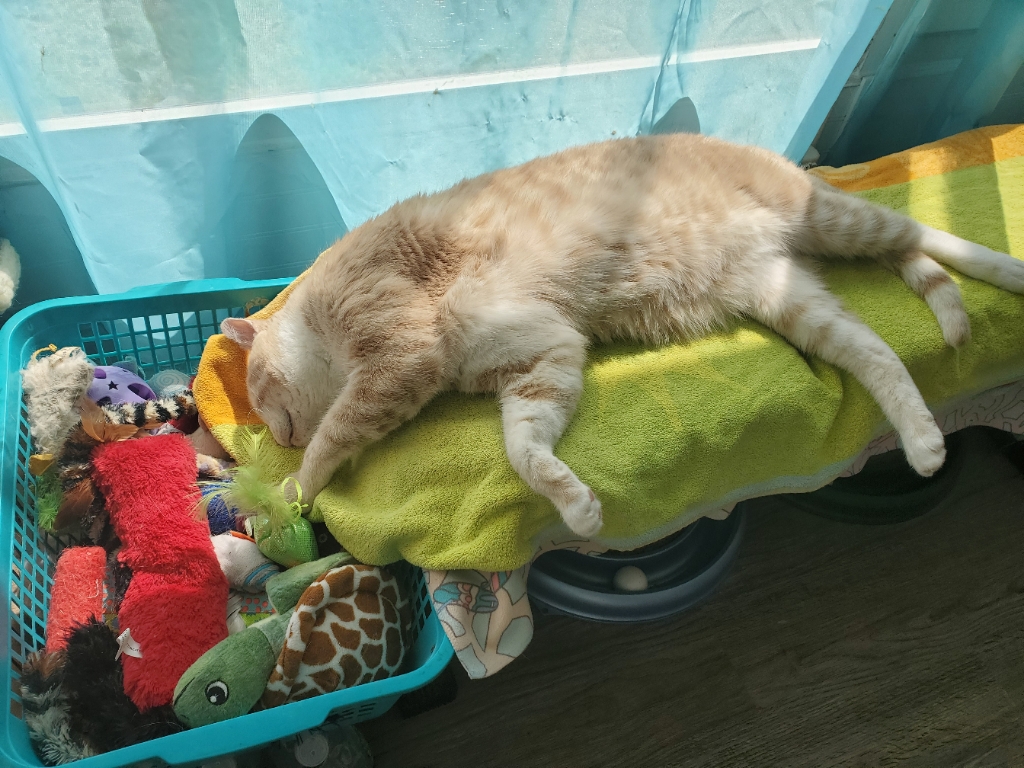 iamthesunking August 11, 2023 at 1:53 pm Catorze has fallen asleep in the middle of washing his paw, with the paw sticking up in the air. They’re all weirdos. Reply ↓