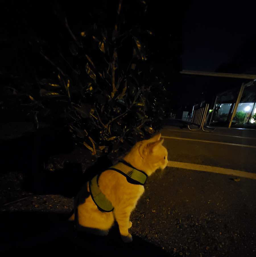 With Fall upon us, the days are getting shorter. As a consequence, Frankie sometimes goes on a walk while it is still dark outside.