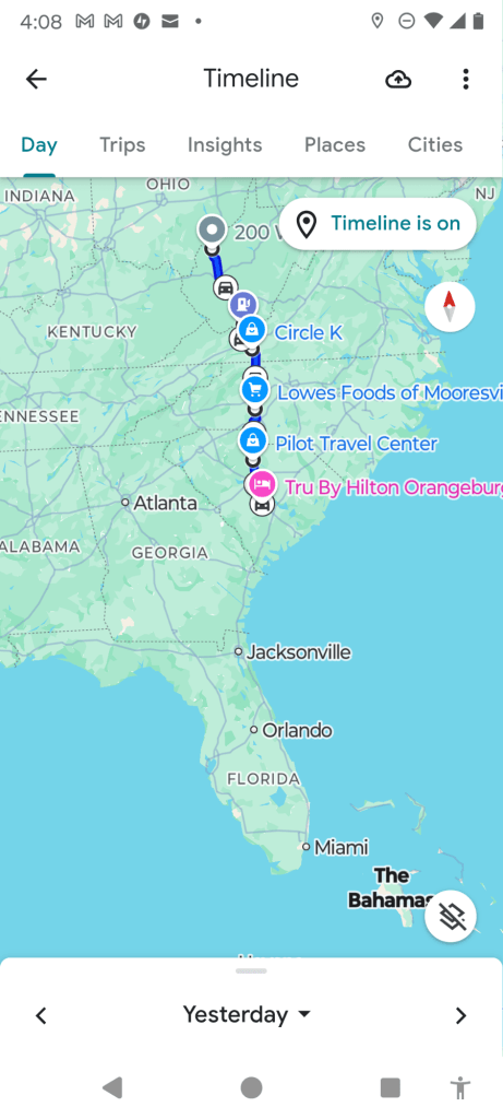 We traveled for eight and a half hours, stopping twice to charge the car and once because my back was hurting and I needed to stretch.