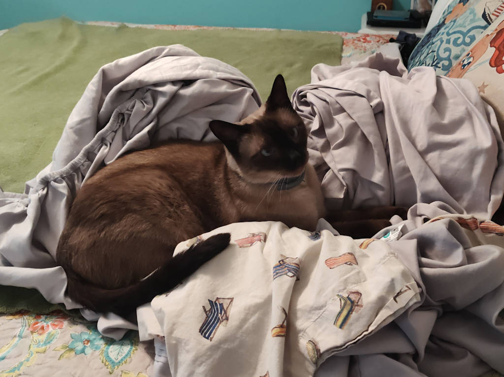 We will be on a cruise next week. Our former neighbor is coming to stay with the cats until we return.