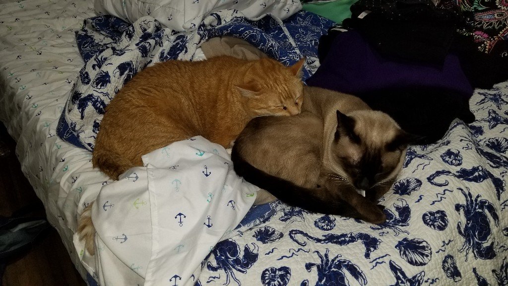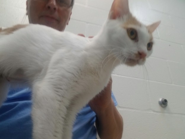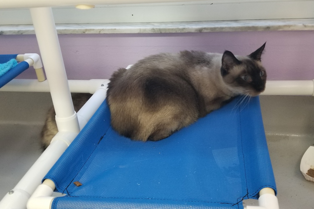 Another woman, who had been in earlier, decided to adopt an eight year old male Siamese cat named Sage. He was hiding under their homemade cat tree so I had to pull him out and put him in a carrier. I’m sure he wasn’t happy about it then but today he is living the good life.