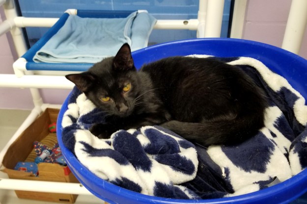 I don’t know how long he was coming around. I assume long enough to know he was separated from his original family. So my mother-in-law decided to bring him in and make him an inside cat.